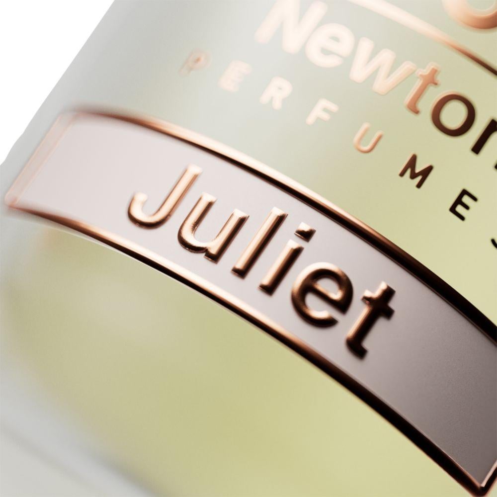 "العطر الأنثوي الأسطوري الذي تستحِقُّه الأنثى الشاعرية؛ بنفحاته الأنثوية العذبة المستوحاة من التوت والمسك والفانيليا تتوجي مع جوليت بشاعرية عطرية"