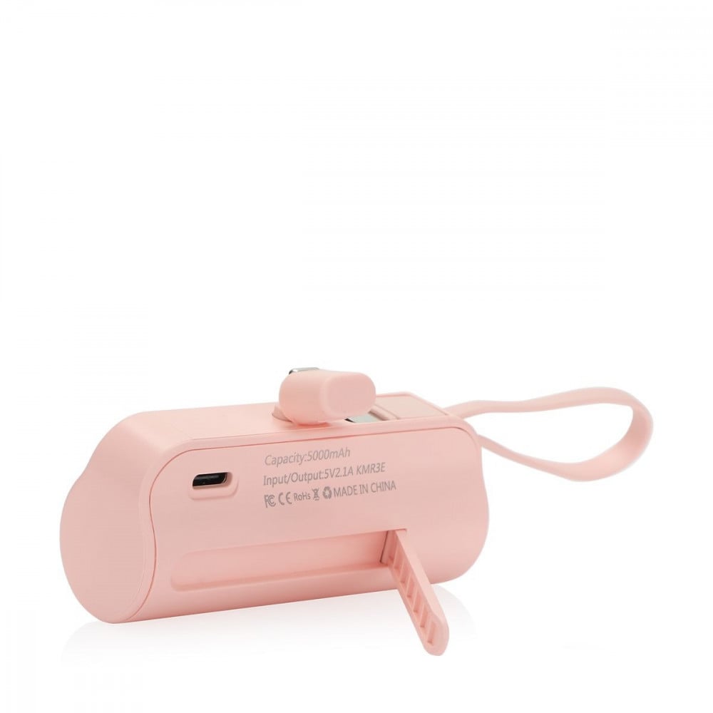 شاحن لاسلكي (باور بانك) صغير لايتنينج + كابل يو اس بي سي 5000 مللي امبير - زهري